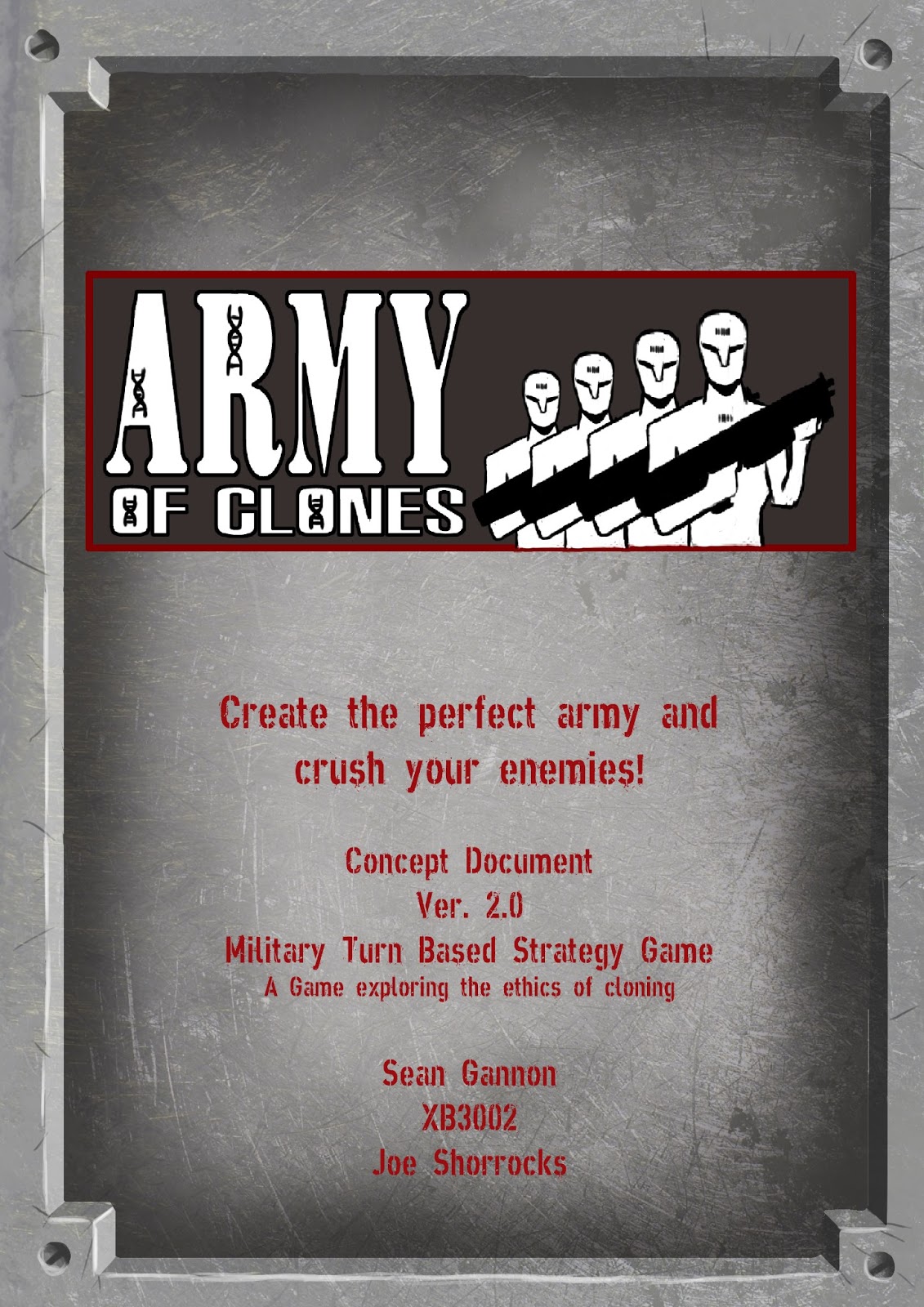 As of now, I'm planning to use the Strategy game for the final Games Design Document. It's a genre I'm not familiar with, which should allow for more research, plus it has less potential for complications than, say, the platformer. I also feel that it'll allow me to explore the ethical side of cloning more effectively than the other concepts.